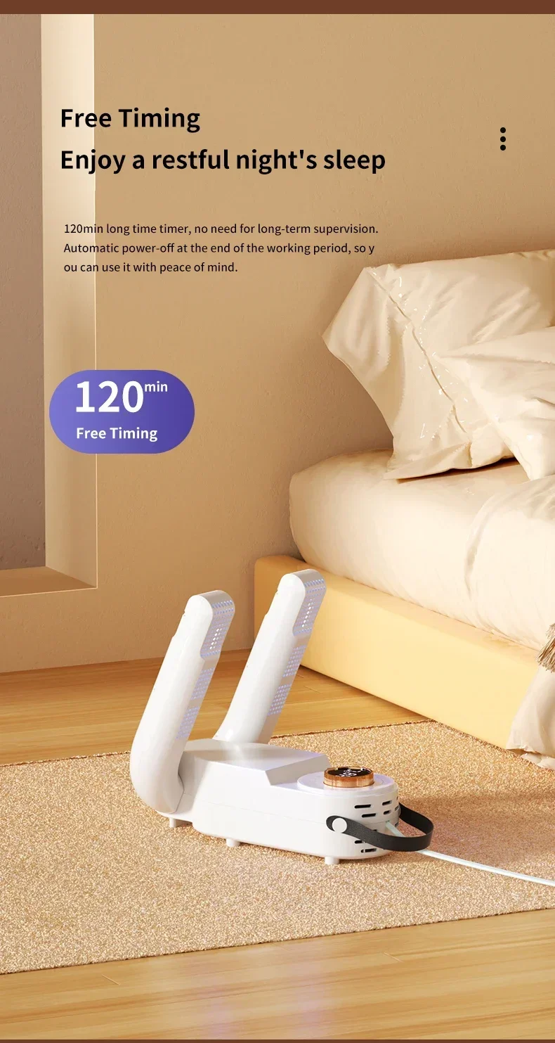 • Intelligent Timer :The Intelligent Timer on this Shoe Dryer allows for convenient and efficient drying, ensuring your shoes are properly dried and deodorized in a timely manner.
